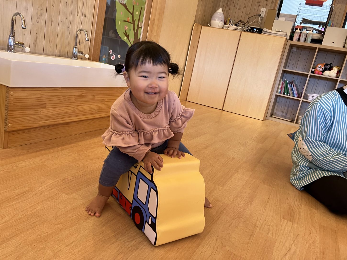次は、新しいおもちゃ(顔表情を付け替えて遊ぶ人形)で遊ぶお友達を発見!!