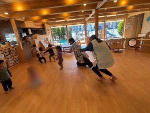 外遊びの前に、室内で身体をあっためました。
