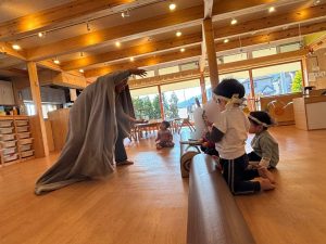 お囃子のように笛の音楽に合わせて太鼓をみんなで叩きました⭐︎
