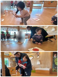 くだものやどうぶつ、先生たちの札をゲットして満足そうなこどもたち♡