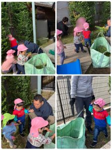 みんなで拾って入れて、0歳児さんもうんとこしょ!とたくさんいれてくれました♡