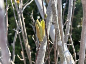 こちらはモクレンの蕾です。築山のてっぺんに植えられているモクレン。