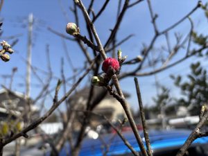いまにも咲きそうなハナモモの蕾を見つけました!あかくて可愛い色!咲いたらまたお知らせしますね♪