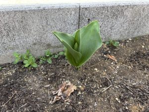 最後にこどもたちが植えてくれたチューリップのお花!芽がでてすくすく成長しています。